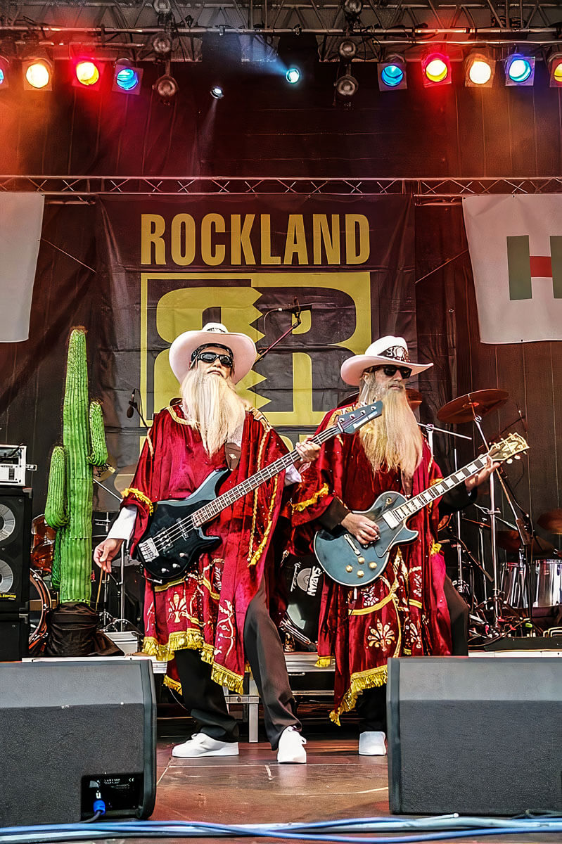 THE SENSATIONAL ZZ TOP SHOW. Die Band SISSIS TOP aus dem Rhein-Neckar Delta setzt Maßstäbe in der Kategorie der angesagten Tribute Bands. Die drei ausgebildeten Musiker spielen nicht nur die Songs der “little old band from texas”, sondern versehen ihre Shows mit original Choreographien und authentischen Outfits. Auch bei den Songs wurde größten Wert auf Authentizität gelegt.So gelingt es der Band bei einem umfassenden Programm von Hits wie Tush, La Grange bis hin zu Sharp Dressed Man auch bei den anspruchvollsten ZZ-Top Fans Begeisterung hervorzurufen. Vergleiche mit einer der berühmtesten Bands der Rockgeschichte sind also erlaubt.Aber ein kleinwenig Augenzwinkern ist auch dabei, was man schon dem Line Up entnehmen kann, denn an der Gitarre findet man Willy Gibihm (alias Hans Schmitt), Bass bedient Rösti Grill (alias Jürgen Riedel), und Schlagzeug bearbeitet Frank Friert (alias Udo Boppré). SISSIS TOP: Hans Schmitt / (Willy Gibihm), guitar and vocals Juergen Riedel / (Rösti Grill), bass and vocals Udo Boppre‘ / ( Frank Friert ), drums and no vocals